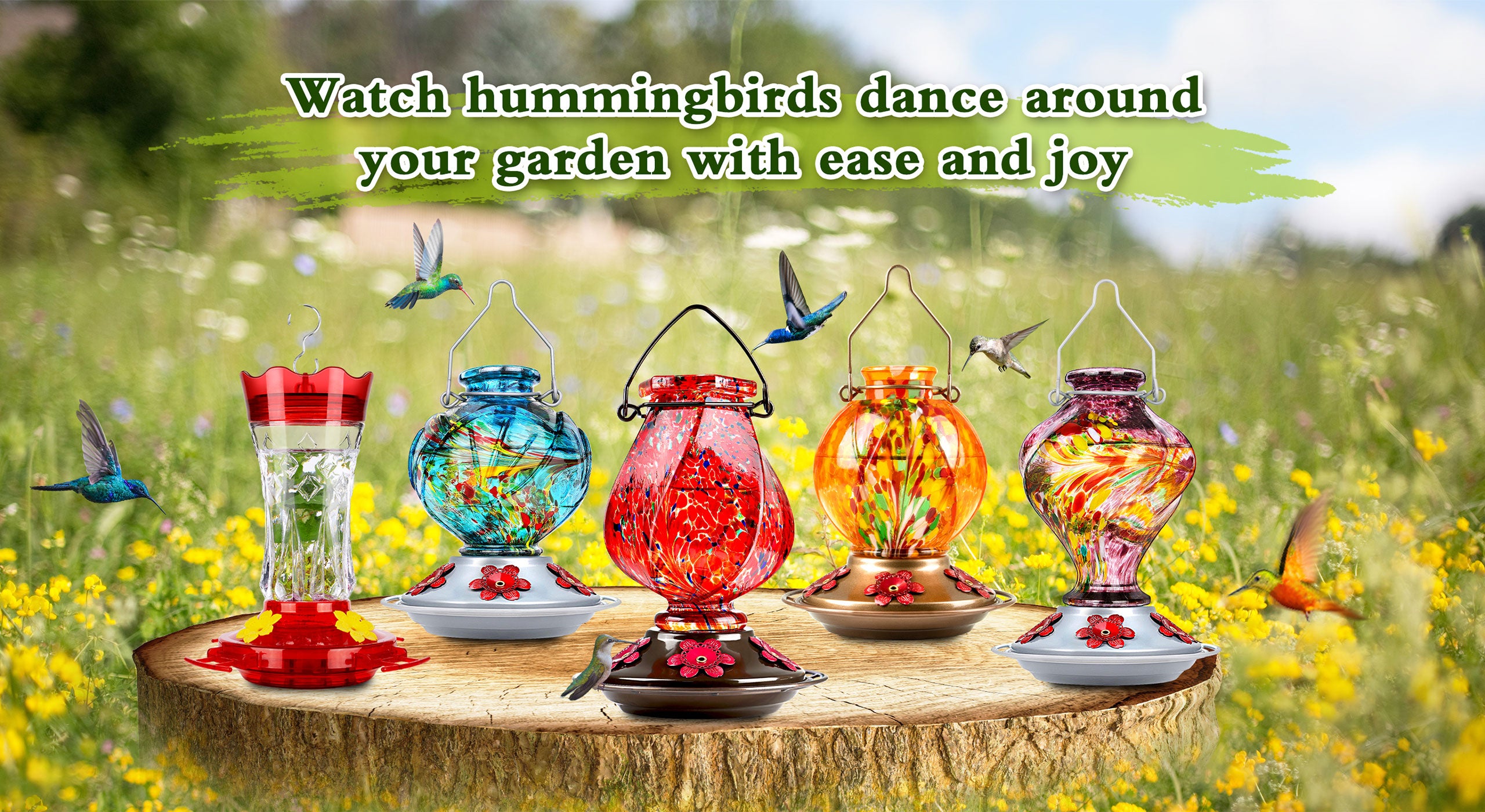 Premium Glass Hummingbird Feeder - 22oz Hand-Blown with Ant Moat & 5 Ports - Leak Proof Outdoor Hanging - Bird Lovers Gift Set