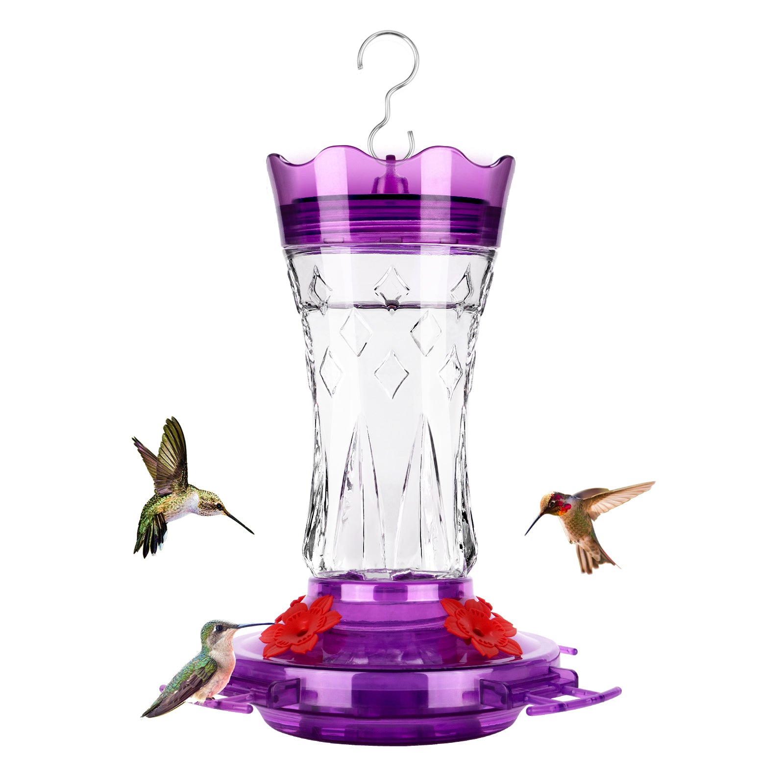 Ant-Proof & Bee-Proof Glass Hummingbird Feeder - Built-in Ant Moat & 4 Bee Guards - Leak-Proof 15oz Shatterproof Glass - Stars Decor (Red/Purple) - Perfect Outdoor Bird Gift