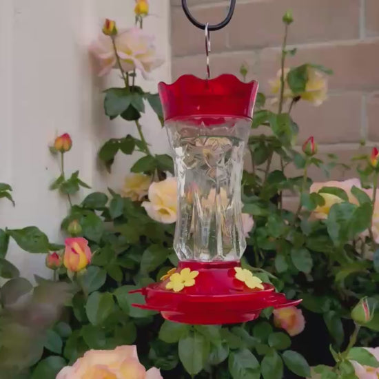 Easy to Fill and Clean - Designed with clear glass and wide mouth to make viewing and nectar filling simple. Easily unscrews the bottle from the base for thorough cleaning. We recommend hand washing with warm soapy water.